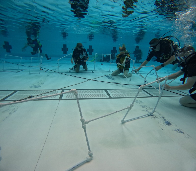 Day four was the day that was perhaps the most anticipated by our students! Dr Maria Gallagher, from the University of Kent, gave a talk on VR and Astronaut Training, before the students took part in SCUBA ‘astronaut training’ or drone flying. BSAC (British Sub-Aqua Club) led the workshop which gave the students a chance to try out the kit and figure out how to be buoyant, experiencing a ‘weightlessness’ sensation similar to that experienced in space. Then they were challenged to build structures underwater and work as a team to set up a "satellite".
